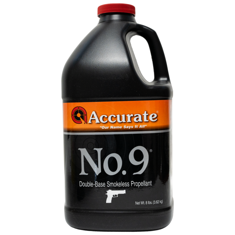 Accurate No. 9 is a medium-slow burning double-base spherical pistol powder specifically designed for higher-velocity handgun loads. Its spherical granules ensure smooth, consistent metering through progressive presses, while providing clean burning, low residue, and impressive performance in a wide range of popular pistol cartridges.