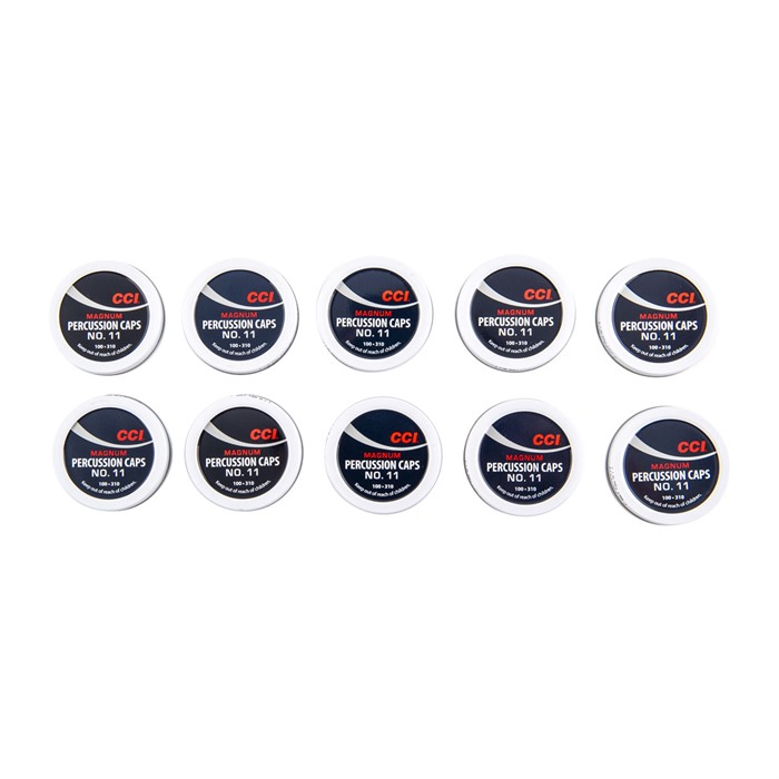 Buy CCI Percussion Caps #11 Box of 1000 in stock immediately at Premium Reload Supply for muzzleloader hunters, inline rifle shooters, and black powder enthusiasts needing magnum-strength non-corrosive priming with ribbed copper cups for #11 nipples during the 2026 percussion cap shortage crisis.